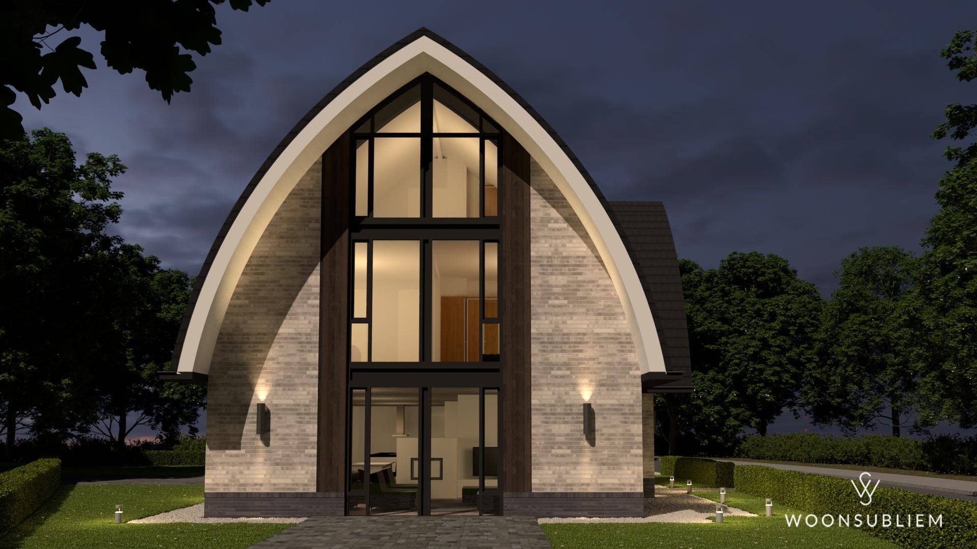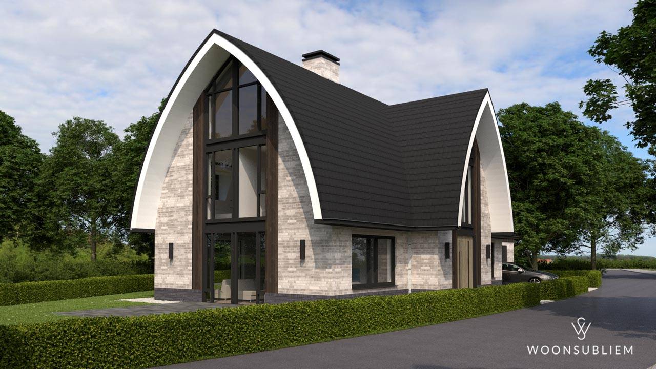 De villa in Blaricum kenmerkt zich verder door de sterke verdeling en doorlopende glazen puien op de kopse kanten van de woning die geflankeerd worden door een houten omlijsting. De ramen zijn voorzien van extra raamhout waardoor deze rijker gedimensioneerd zijn wat de allure van de woning versterkt. De woning wordt uitgevoerd met een antraciet/bruine strengpers steen waarbij de plint voorzien is van een rollaag. Hierboven is gekozen voor een chique zandkleurige steen om het geheel in balans te brengen.