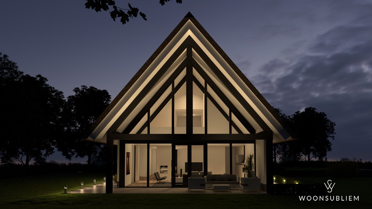 Royaal opgezet en door de combinatie van riet, stucwerk en de risalieten een geheel eigentijdse invulling van de schuurwoning. De risalieten geven zowel esthetisch als ruimtelijk extra cachet aan de woning zonder afbreuk te doen aan de gekozen stijl.