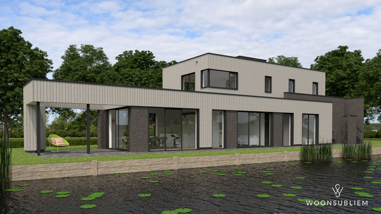 De wens van de opdrachtgever voor een modern ontwerp, maar niet te abstract, is door de ontwerper vertaald door te kiezen voor een gevelbekleding in vergrijzende houten gevelbekleding. Om de massa opbouw te versterken zijn er enkele accenten uitgevoerd in antraciet kleurig metselwerk. Hierdoor ontstaat er een levendig lijnenspel tussen de verschillende bouwvolumes.