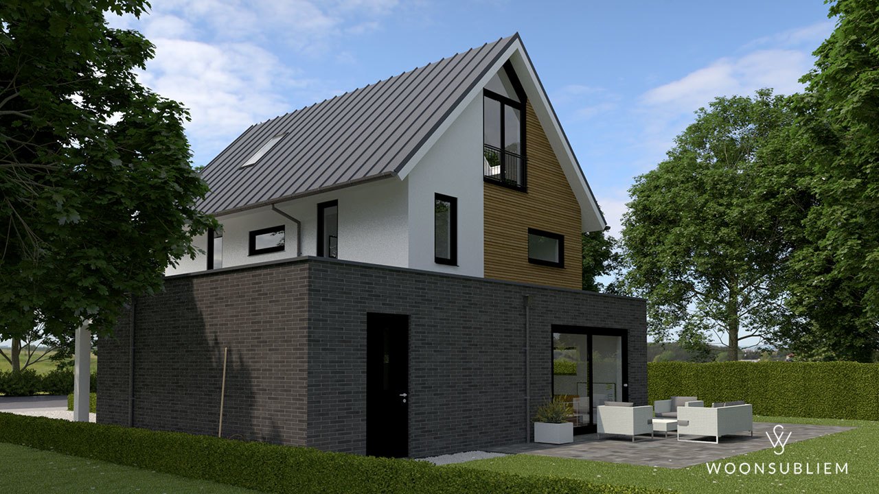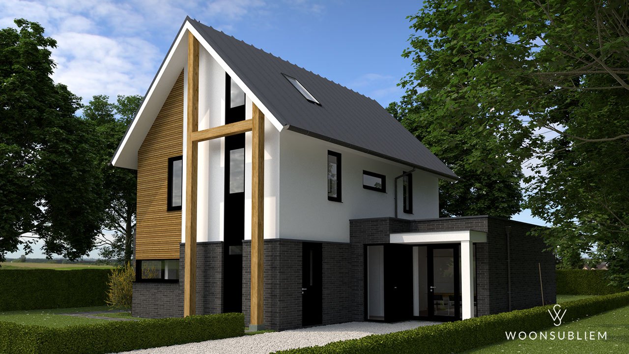 Door toepassing van een gedeelte in hout ontstaat er een modern maar tevens warm effect. De strakke belijning van de kozijnen zorgen ervoor dat de gevels spannend worden. Elke gevel krijgt hierdoor een eigen gezicht.