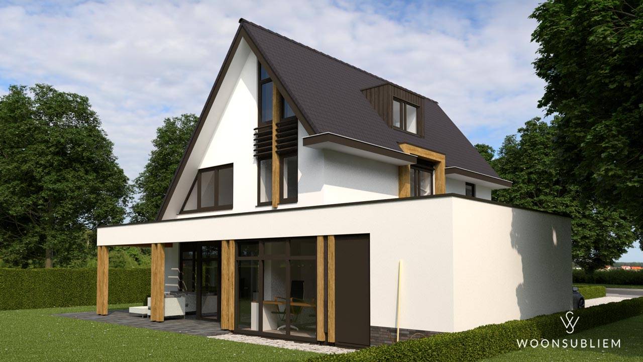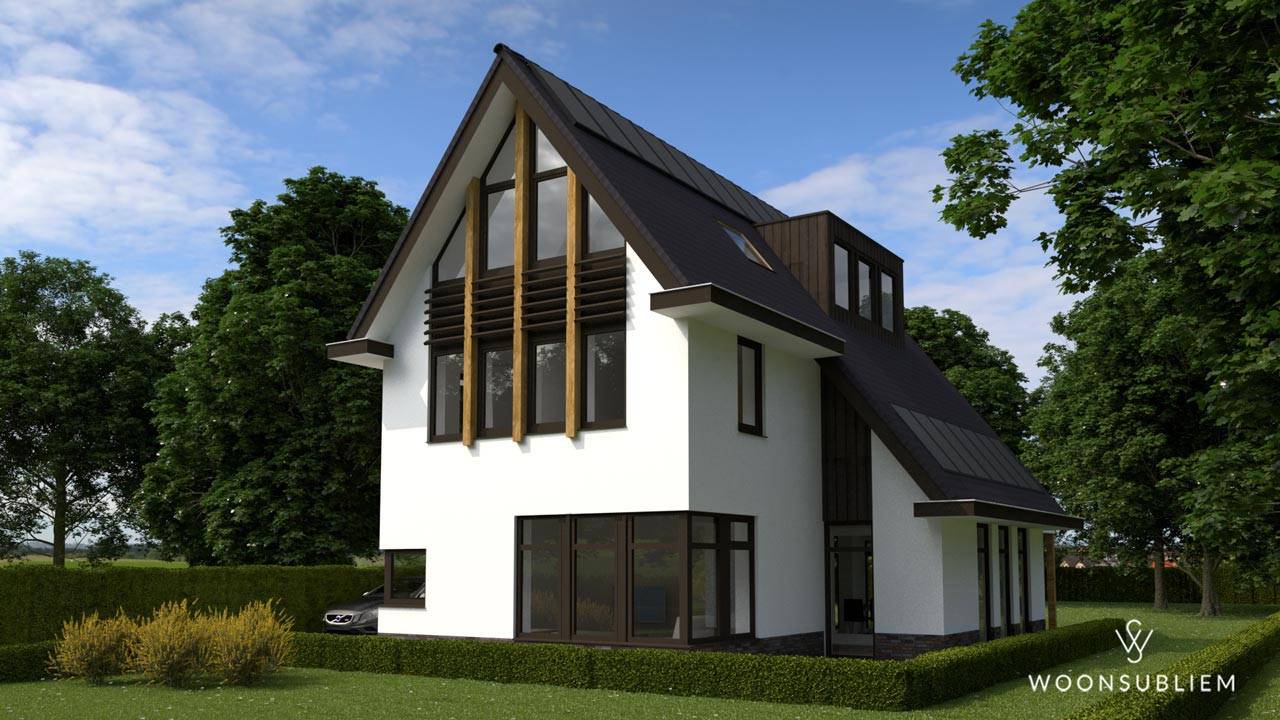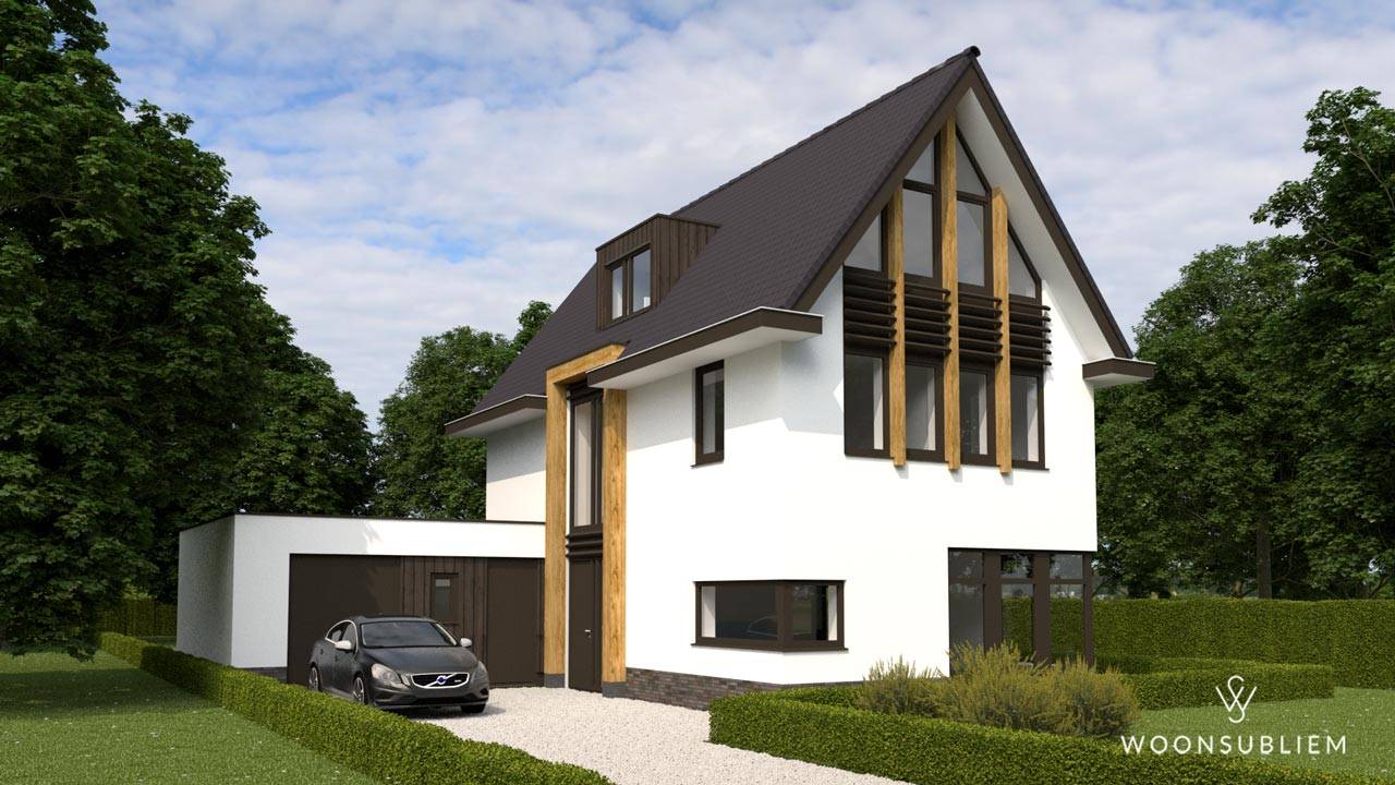 Samen met de opdrachtgever hebben we een moderne variant ontworpen uitgaande van het principe van stucwerk met een contrasterende steunkleur in het antraciet/zwart en accenten in natuurlijk hout. De vriendelijke accenten van natuurlijk hout complementeren de woning en zorgen voor de toegankelijke uitstraling die past bij de lommerrijke buurt waarin de woning gelegen is.